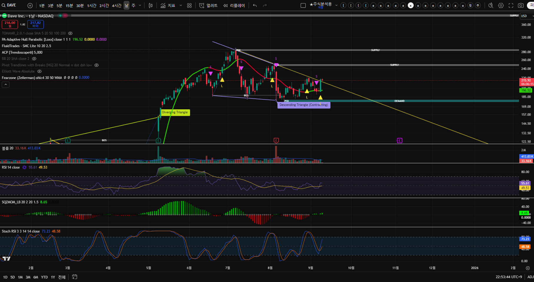 1년 만에 416% 급등! 미국주식 DAVE, 지금 올라타도 괜찮을까? (하방쐐기 상방돌파 분석)